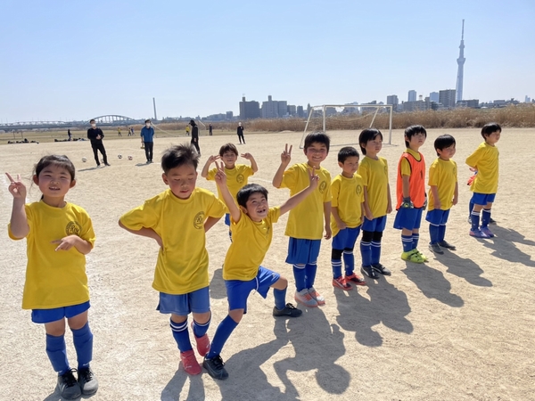 1年生が四ツ木グランドにて、柴又キッズさんと練習試合を行いました。4月から2年生になるにあたり、少しずつポジションを意識しています。相手より走り、相手よりボールを持ち、相手より強い気持ちで戦う。写真ではおふざけ顔ですが、試合では全員が一生懸命プレーしてくれました。対戦したくださった柴又キッズの皆様、ありがとうございました!