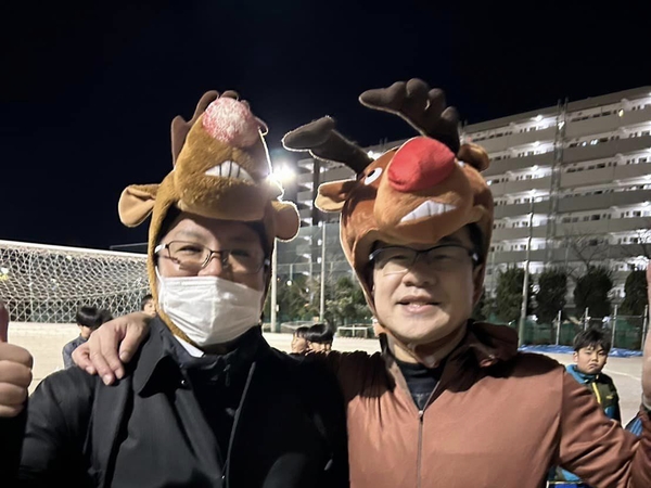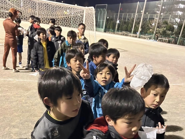 毎年恒例のクリスマス夜練。寒い中たくさんの選手がいつものお菓子掴み取り目当てで集まりました!おいおいサッカーは