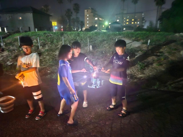 夜は花火を楽しみ、朝は海岸まで散歩に行き、波に揉まれ、
